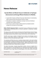 SEOUL,South Korea and PRAGUE,Sept. 20,2024 -- Hyundai Motor Company and Škoda Group have signed a Memorandum of Understanding (MOU) to commence collaboration on establishing a hydrogen mobility ecosystem.