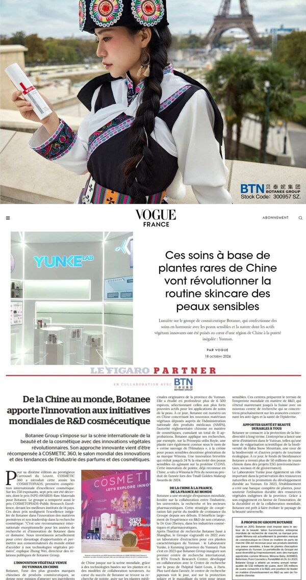 In the 10th COSMETIC 360,held at the prestigious Carrousel du Louvre,Botanee won the 2024 INPD AWARDS-Raw Materials and the COSMETOPIADS-Public Research Excellence award,highlighting its unmatched excellence in raw material innovation and leadership in groundbreaking cosmetic research. Vogue Franceand Le Figaro have cast a spotlight on Botanee's outstanding achievements,further enhancing the brand's influence in the industry.