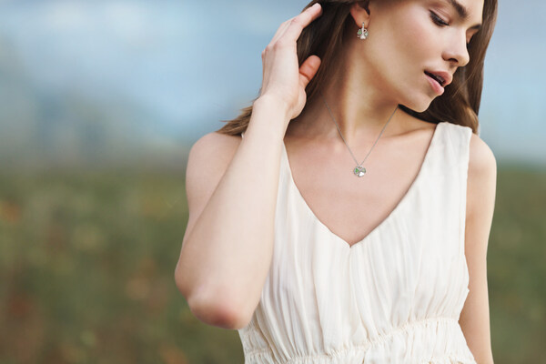 Serendipity Fortune Pendant & Earrings: This set captures the heart of luxury with 16 diamonds and a heart-shaped Swiss blue topaz,set in a four-leaf clover design made from recycled gold. It's a symbol of prosperity and refined style.