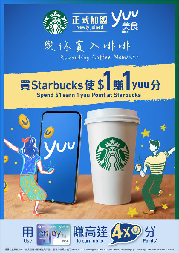 HONG KONG,Nov. 26,2024 -- Attention,coffee aficionados! Exciting news is brewing! yuu is thrilled to announce that Starbucks,the world's leading coffee and premium roasting brand,has officially joined yuu. This partnership opens up a wider array of great dining and lifestyle offers for yuu Members! Starting now,yuu Members can earn 1 yuu Point for every $1 spent at Starbucks,plus earning up to 4x Points with the Hang Seng enJoy Card. But that's not all—exciting offers and rewards are just around the corner!