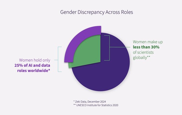Women hold only 25 percent of AI and data roles worldwide and make up less than 30 percent of scientists globally.