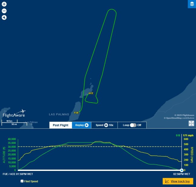 The plane touched down in Lanzarote just before 3 pm yesterday after an hour and a half in the air.