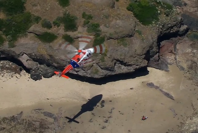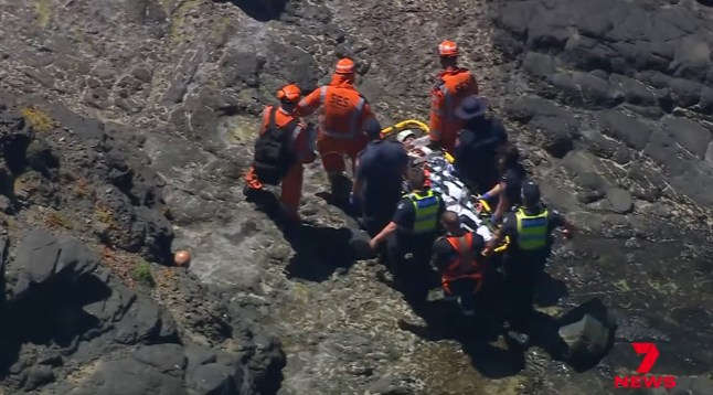 A 25-year-old tourist from Austria was rescued from Bushrangers Bay in Melbourne,Australia after plunging 20ft down a cliff (Picture: 7News)